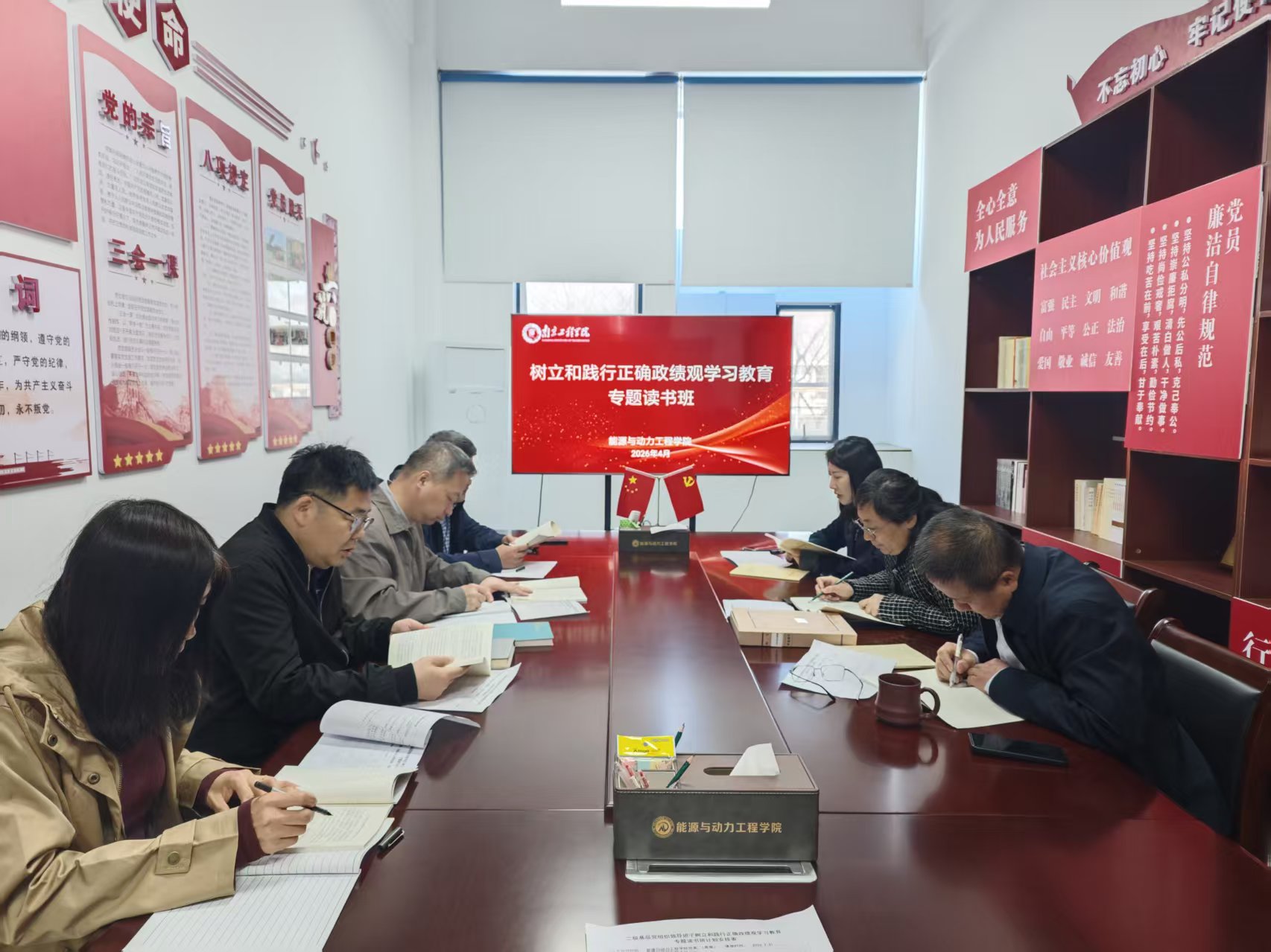 读书班期间,学院班子成员与党委理论学习中心组成员在学院9-204会议室,开展集体学习研讨。大家原原本本、逐章逐篇研读《习近平关于树立和践行正确政绩观论述摘编》等重要文献,深刻体悟习近平总书记在不同历史时期、不同岗位上始终恪守正确政绩观的实践历程与思想脉络。围绕学院“十五五”规划、学科建设、人才培养、科研攻关等重点工作,学员们深入交流,一致表示要始终将为师生办实事、解难题作为衡量政绩的根本标尺,坚决摒弃“形象工程”“短期行为”,以实干实绩推动学院事业内涵式发展。